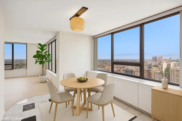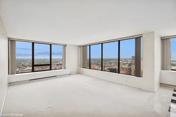 2 bed 2 bath condo in prime location on the 41st floor of 43 total floors. Rarely available corner unit with stunning views over Belmont harbor and northwest exposure of city. Large primary bedroom with western exposure and en suite bath. Panoramic views from the living room and dining area over the north city and lake. This exclusive unit is ready to be updated to your exact style. Location offers the best of city living, green space & nightlife while also providing quiet seclusion on the upper tier. Full amenity building including 24-hour door staff, outdoor pool & sundeck, fitness center, laundry room, receiving room & valet parking with fees. Common areas recently updated. No pets in building. Unit is sold AS IS & ready to be renovated to your exact style and needs. Currently the highest unit available with un paralleled views.